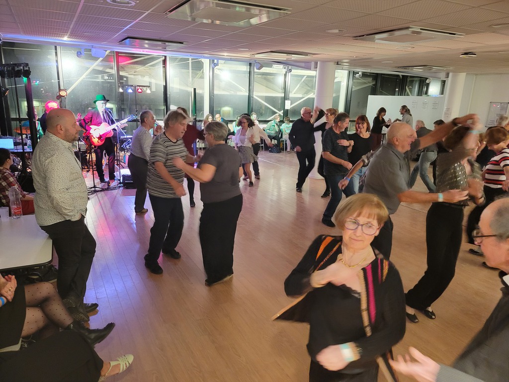 Le samedi 24 janvier 2026, une trentaine de courageux sont venus découvrir le shag lors d'un stage évolutif de 5h assuré par le jeunes professeurs Jason et Anna venus spécialement de Strasbourg. Les sourires et les moments de joie partagée en disaient long sur le bonheur ressenti par chacun lors de cette journée ! Et beaucoup avaient encore de l'énergie à revendre pour danser, le soir, sur différents rythmes swing en présence de l'orchestre "The Size Doesn't Matter". Une journée mémorable ! Une soixantaine de participants pour cette belle soirée à la salle de la Tour de la Liberté de Saint-Dié des Vosges.